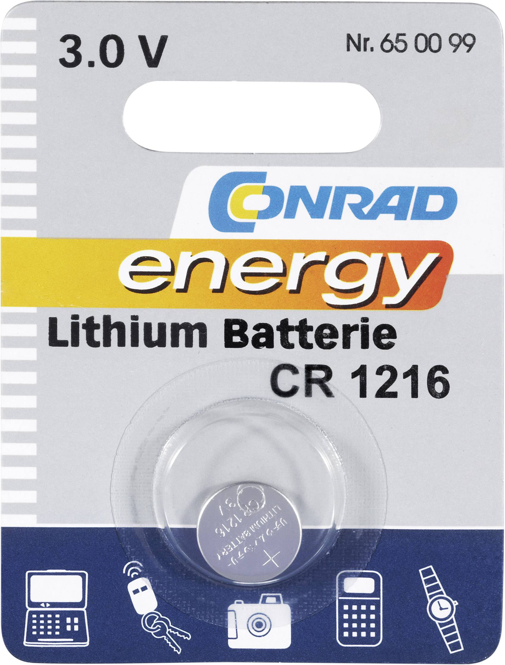 Bateria guzikowa, litowa Conrad Energy CR 1216, 3V, 25 mAh