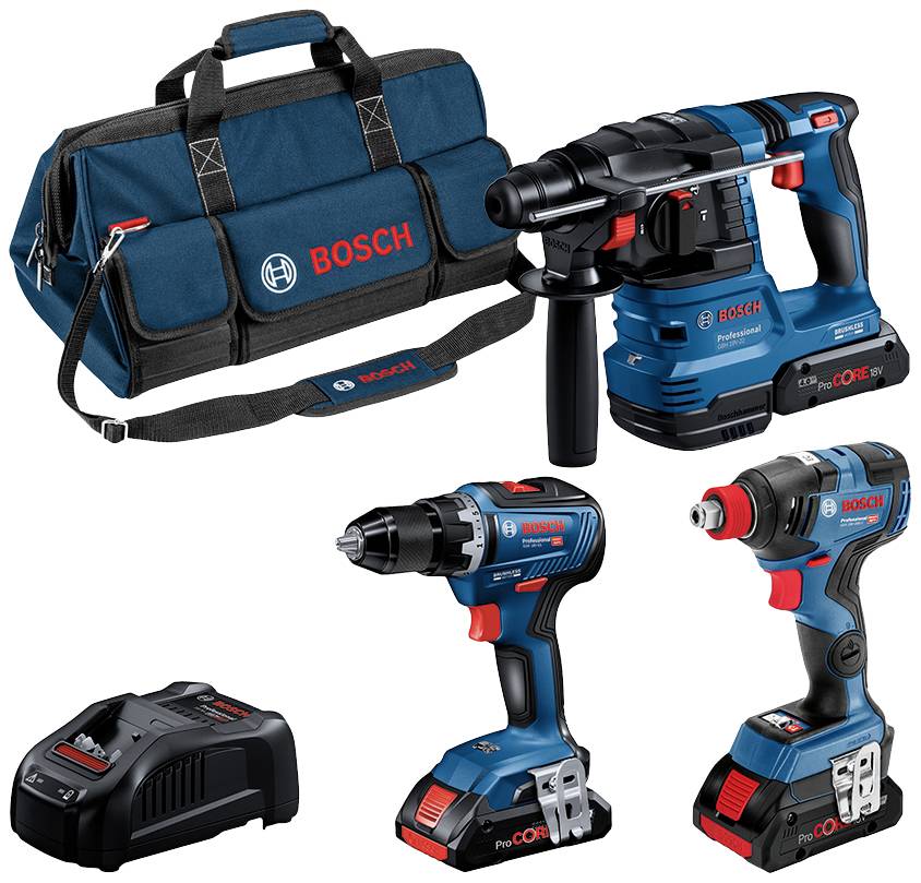 Bosch Professional Profi Set 18V(GSR,GDX,GBH,3xPC4,0Ah,GAL) 0615A5003B Zestaw narzędzi na narzędzia akumulatorowe, dla r