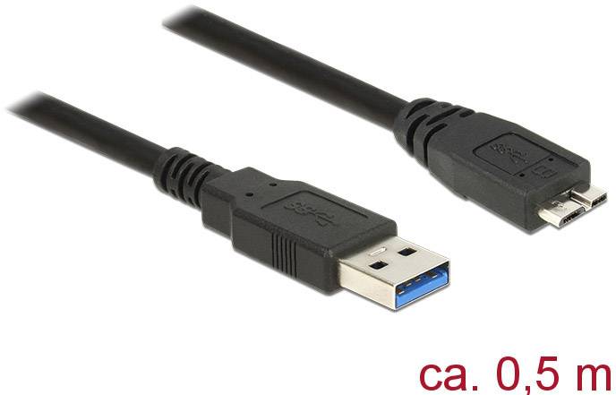 Delock Kabel USB USB 3.2 Gen1 Złącze męskie USB-A, Złącze męskie USB Micro-B 3.0 0.50 m czarny styki pozłacane 85071