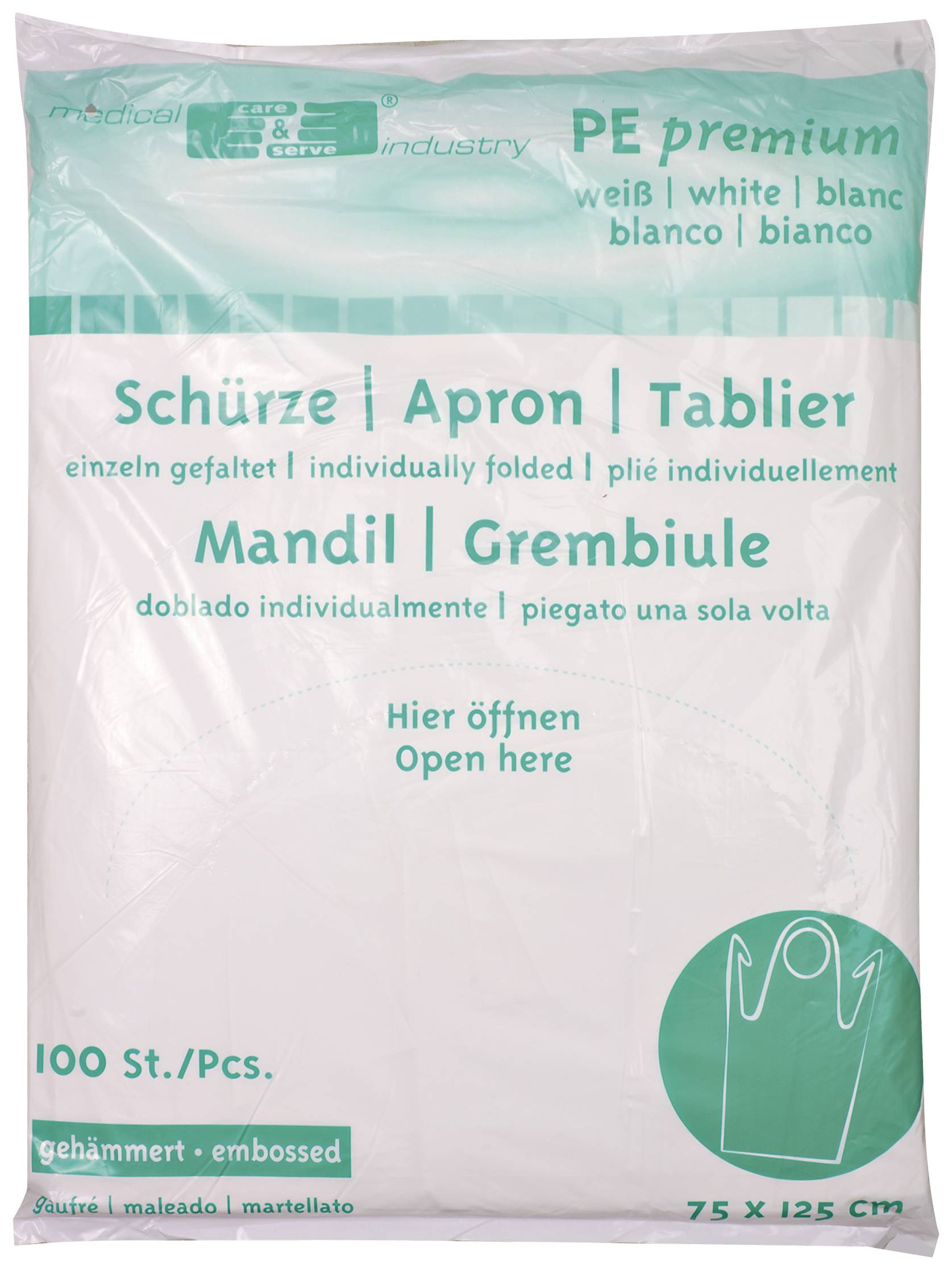 medical care & serve 1005100 Fartuch jednorazowy 75x125 cm PU 100 biały