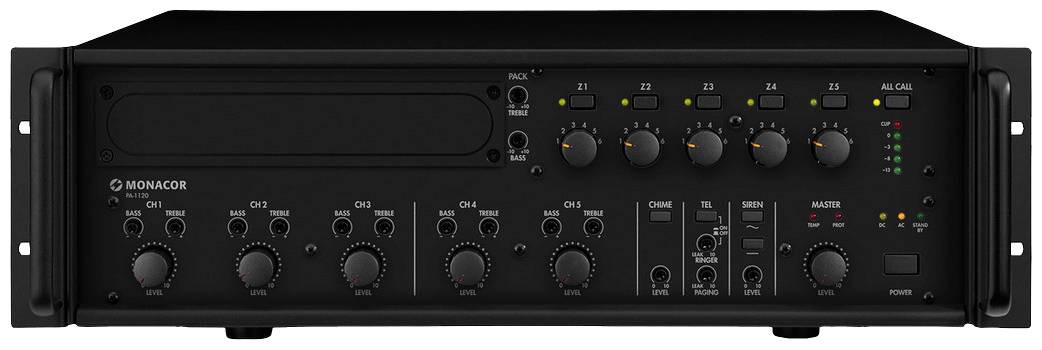 Monacor PA-1120 Wzmacniacz ELA 120 W 1-kanałowy 5 stref
