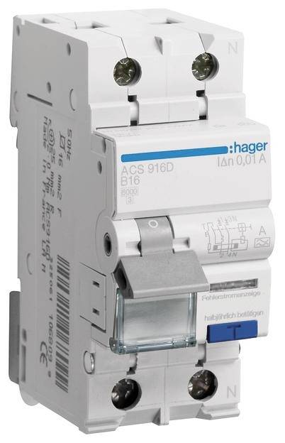 Wyłącznik różnicowoprądowy/automatyczny Hager ACS916D 2 styki 16 A 0.01 A 240 V