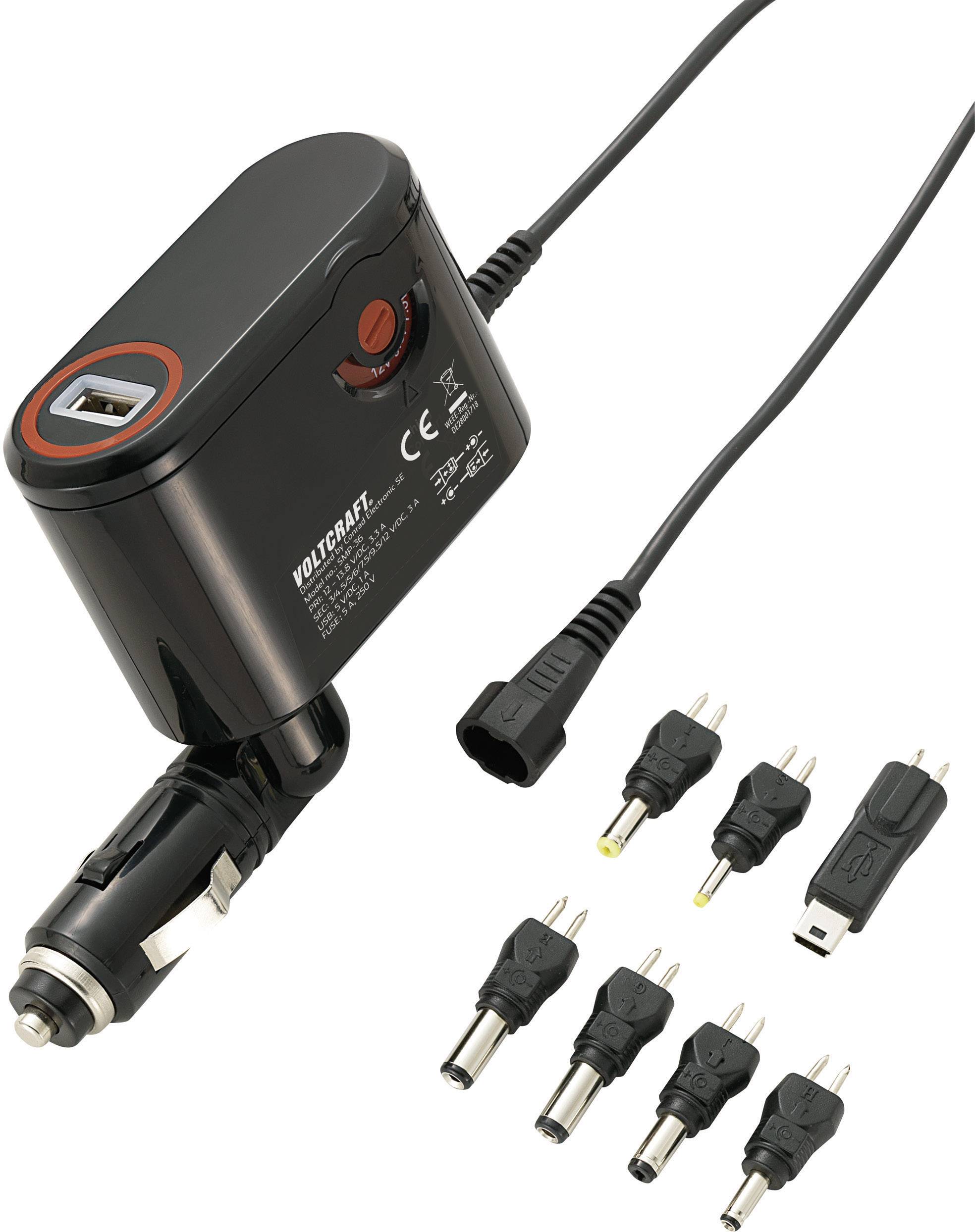 Zasilacz samochodowy VOLTCRAFT SMP-36, 3 - 12 V/DC, 3000 mA, 41 W