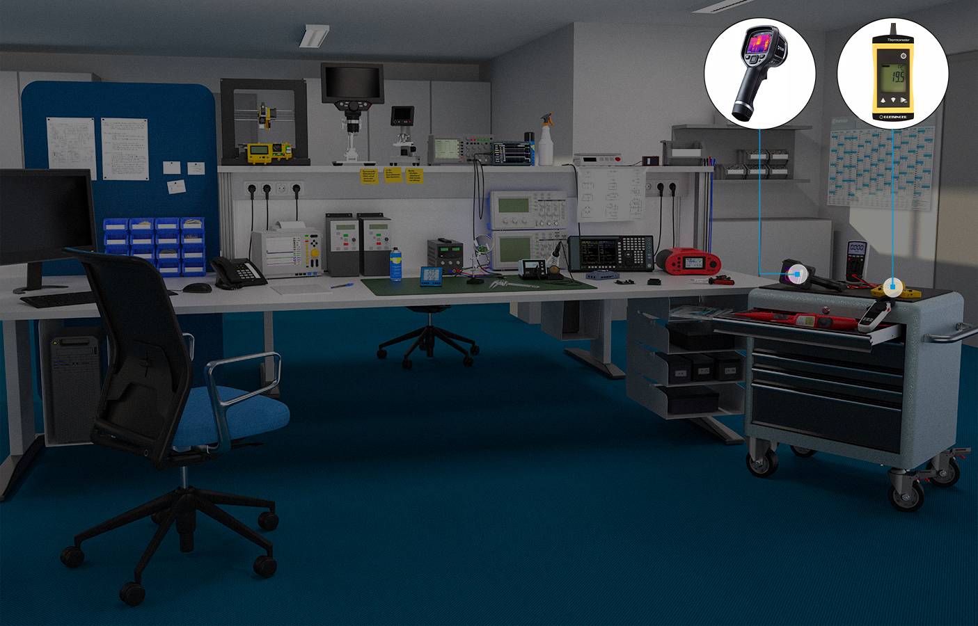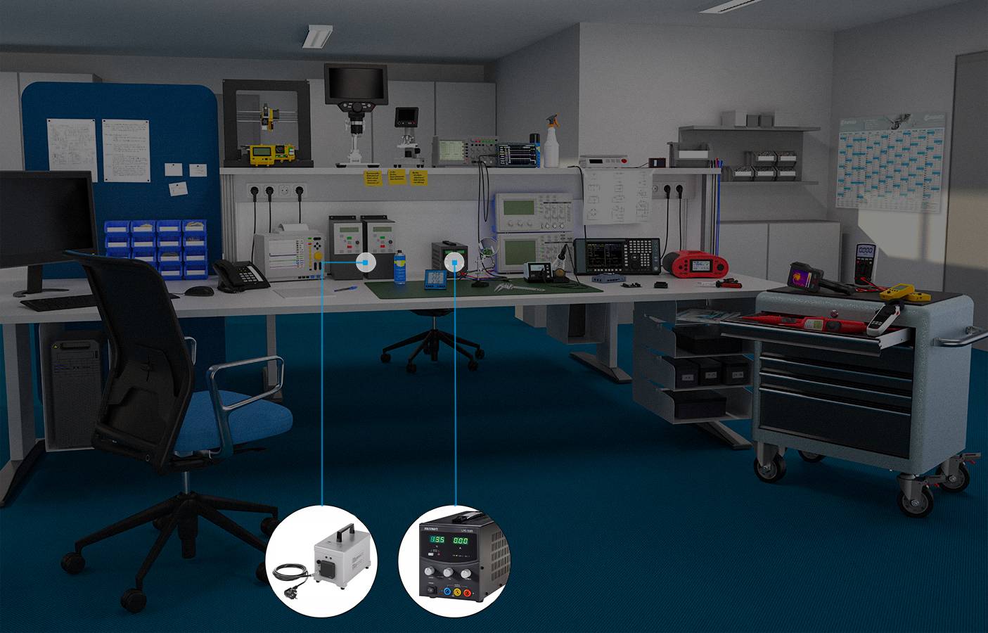 Conrad oferuje kompletne wyposażenie miejsc pracy, dopasowane do różnych potrzeb. Posiadamy w sprzedaży wysokiej jakości testery przeznaczone do laboratoriów, multimetry, przyrządy diagnostyczne, testery środowiskowe oraz wysokowydajne zasilacze wiodących marek. Część szerokiej gamy produktów Conrad Sourcing Platform stanowią rozwiązania do realizacji zajęć dydaktycznych w szkołach wyższych, na uczelniach, a także dla projektantów pracujących w dziale badawczo-rozwojowym.