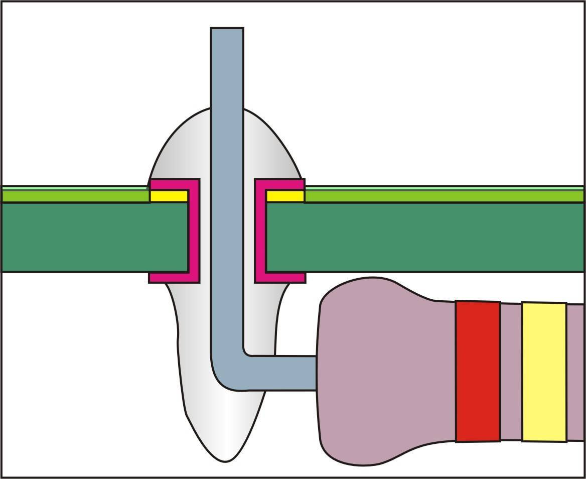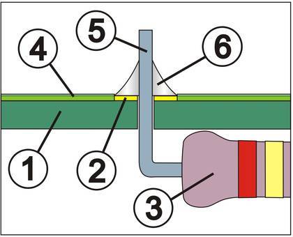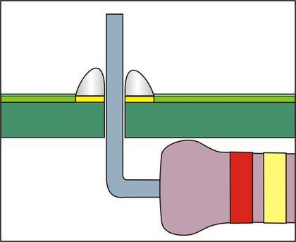 W przypadku punktów lutowniczych ze stykiem przelotowym (patrz szkic) nadmiar lutu może ściekać ze spodniej strony płytki, a także powodować zwarcia.