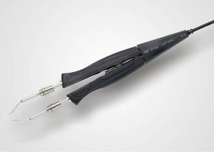 Dwubiegunowe elementy SMD można bardzo łatwo odlutować za pomocą pęsety, która łączy w sobie lutownicę i pęsetę w jednym sprytnym urządzeniu.